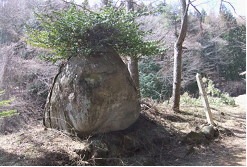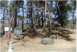 木立の奥にある富士浅間社後方のコンクリート展望台には現在立ち入ることができません