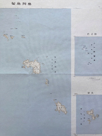 聟島 その右の高い島は針之岩