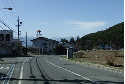 下柿沢信号の先にある火の見櫓旧中山道は火の見櫓の左側の細い道に入ります