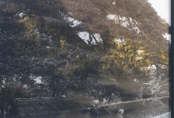 在りし日の“肱懸松”の写真...額に入れてあるので、反対側の植物がガラスに映って写真では見づらい。