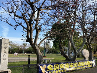 大神山公園 昨日ナイトツアーで小笠原オオコウモリが飛んでいるのを見た ムニンデイゴ(ビーデビーデとも言う)の花が咲いていた沖縄のデイゴと同種