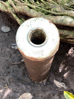 「軍事秘密」と表示がある金属製の筒