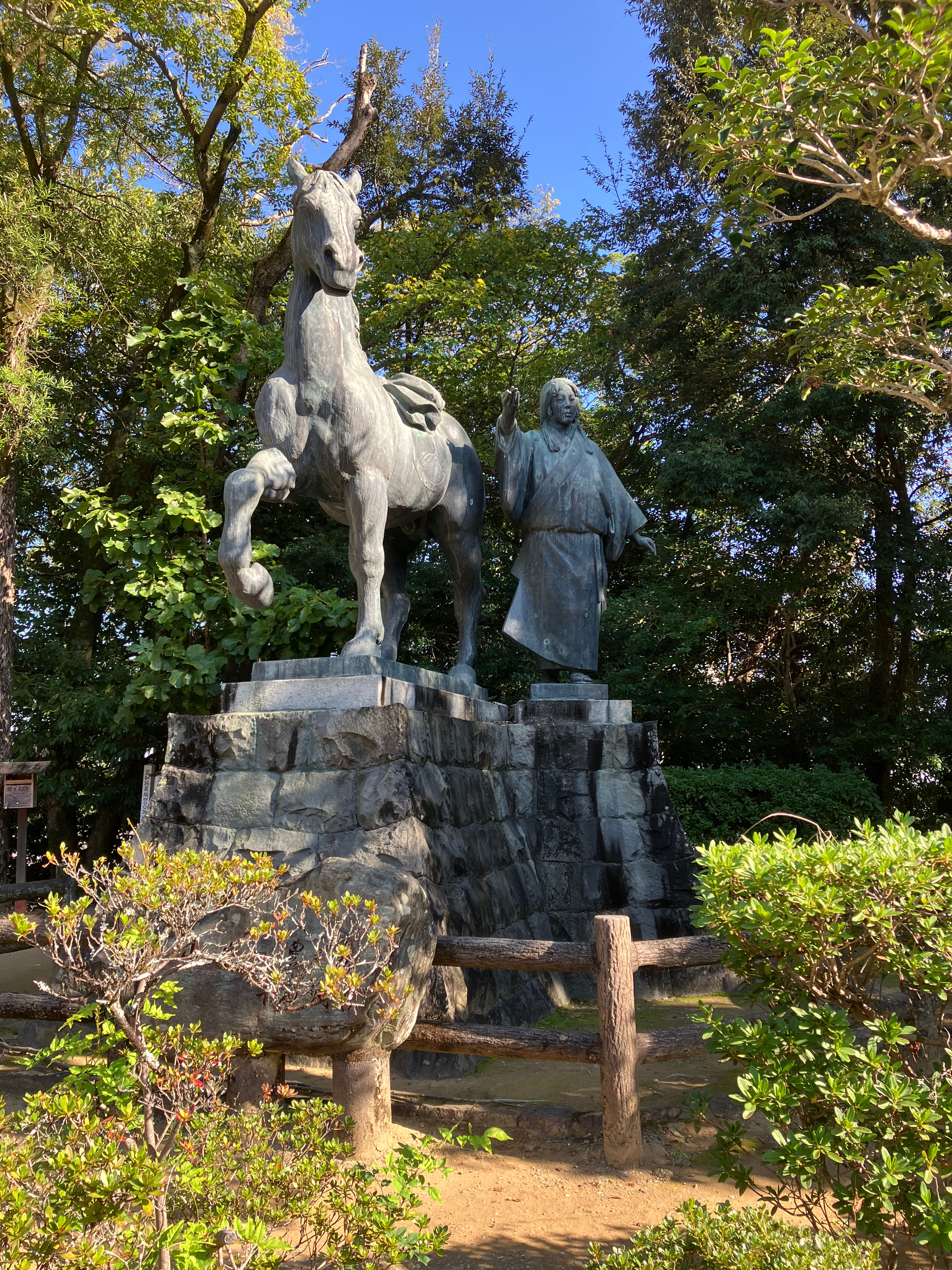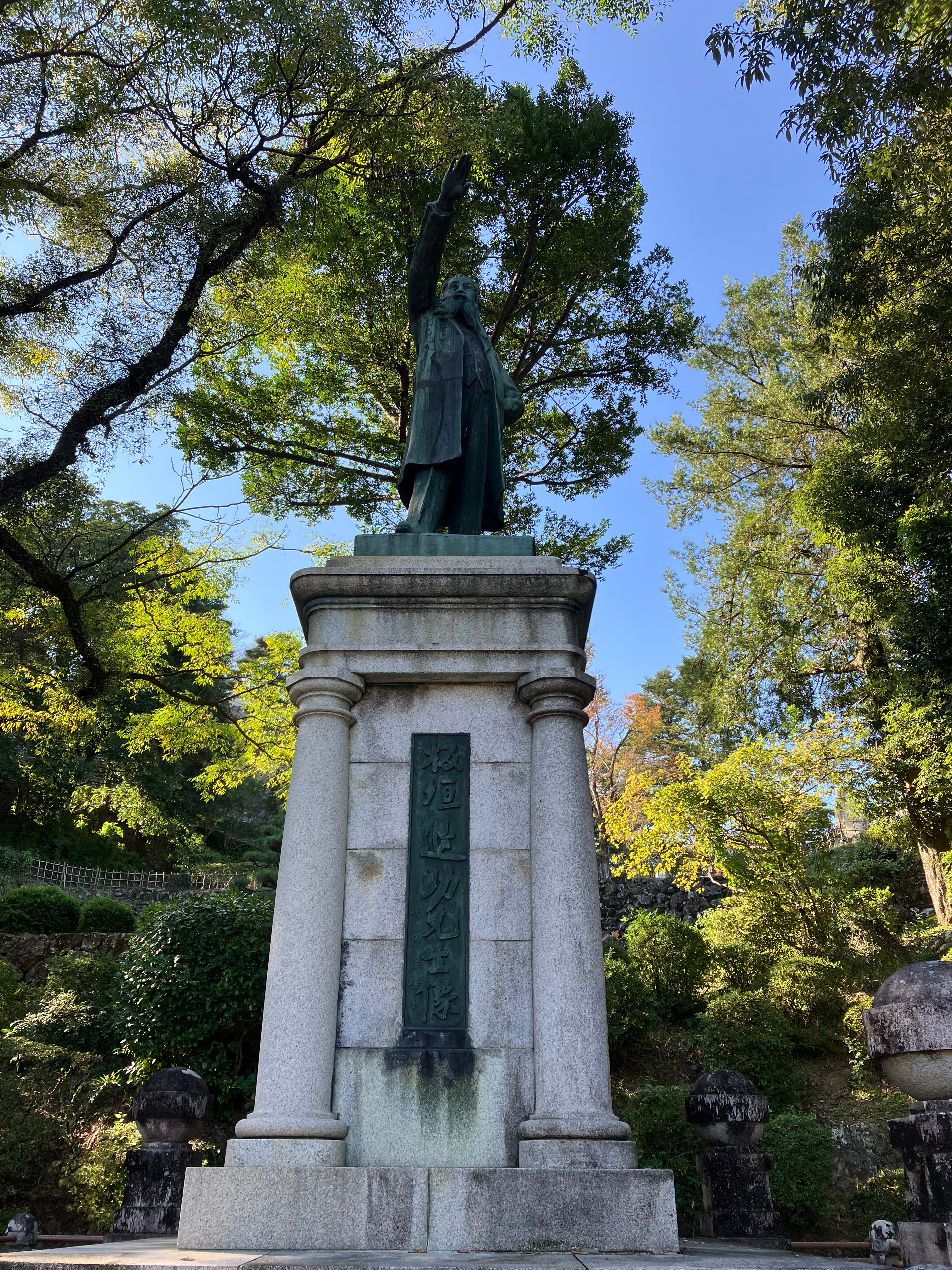 大衆に向かって自由と平等を呼び掛けている板垣退助像