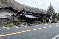 桜沢集落にある古い立派な家明治天皇櫻澤御小休所の碑がある
