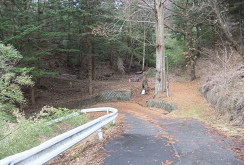 12:02 片平、若神子、中畑の集落を過ぎ、中部北陸自然遊歩道の道標が立つ分かれ道旧中山道は、大きな木の後ろをまわって、未舗装の坂を上って行きますアスファルトの道を進むと、すぐ国道に出てしまいます