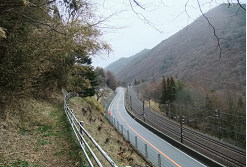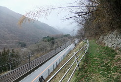すぐ下に国道を見降ろし、パイプの手摺りに沿った心地よい草道を進みます