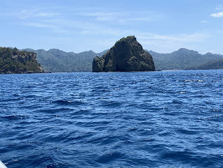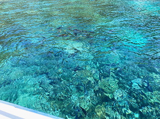 兄島海域公園は海中の景観が優れている海域ということでダイビングスポットでもある 透明度が高く熱帯魚を船の上から眺めることができたが波のせいで写真で見るには無理のようだ