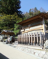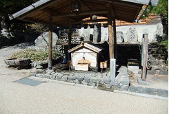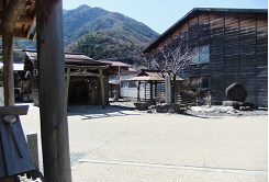 一番先の方に鎮神社の赤い鳥居が見えます 高札場と水屋です
