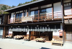 木曽の酒「七笑」、木曽のさけ「中乗さん」の看板が見えます