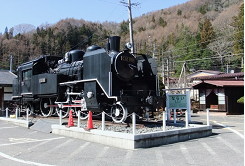 踏切の先、駐車場脇にあるSL20数年前、奈良井宿に立ち寄ったことがあるが、記憶にあるのはこのSLのみ