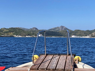 14:56 二見港に戻ってきました 停泊中のおがさわら丸が見えます