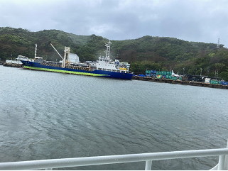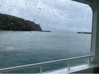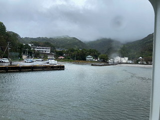 10:17 雨が上がり遠くを見渡せるようになった島影は左「姪島」右「妹島」、「姉島」は見えないが手前の山の右手にある