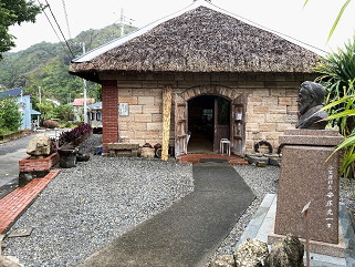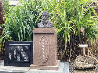 10:45 ロースの胸像と顕彰碑明治の母島開拓者の一人 有用な石材「ロース石」を発見、その利用に尽力