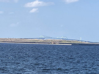14:21 東京ゲートブリッジが見えました 恐竜が向かい合っているような形をしているので恐竜橋とも呼ばれています