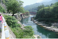 「中山道を歩く」では、この赤い橋を渡って対岸を歩く
