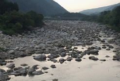 唐沢橋から上流を見ています石ころだらけです