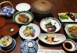 19:28 今日の宿、旅館田政の夕食です真中は鯉の甘露煮ですこれにびんビールが1本ついて〆て11,550円也