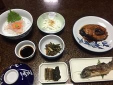 18:20 夕食には鯉の甘露煮、鯉のあらい、岩名の塩焼きと山の幸、この他にそばと茶わん蒸しが出ましたこれにびんビールが1本ついて〆て11,394円也風呂は木の香り豊かなひのき風呂、結構な湯でした