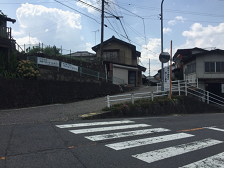 秋葉人社の常夜灯の前から街並みを眺めます