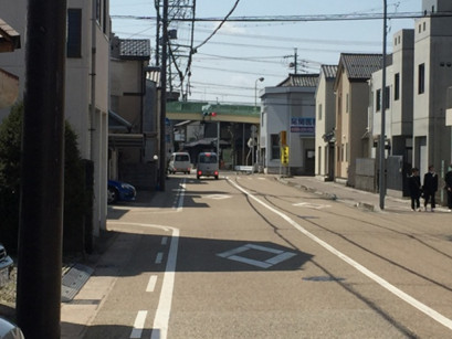 行く手に歩道橋が見えます