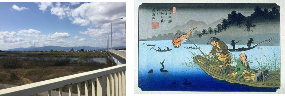 橋の前方、河渡宿方面の眺め