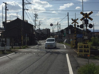 踏切から右手、美江寺駅方面を見ています