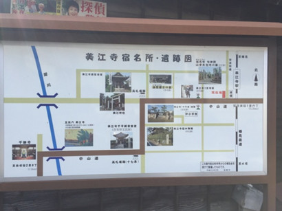 踏切を渡った先の辻にある美江寺宿の案内図