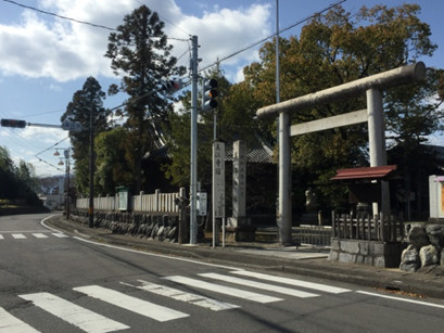 美江神社の鳥居中山道はこの「美江寺」交差点を左方向に曲がる