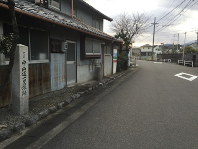 17:07 赤坂宿へ2.4kmの標識遠くの高い山は伊吹山