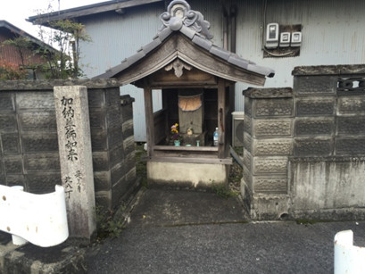 加納薬師如来ブロック塀に囲まれた小さな祠