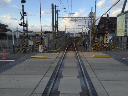17:17 養老鉄道の踏切を渡ります 線路前方は東赤坂駅