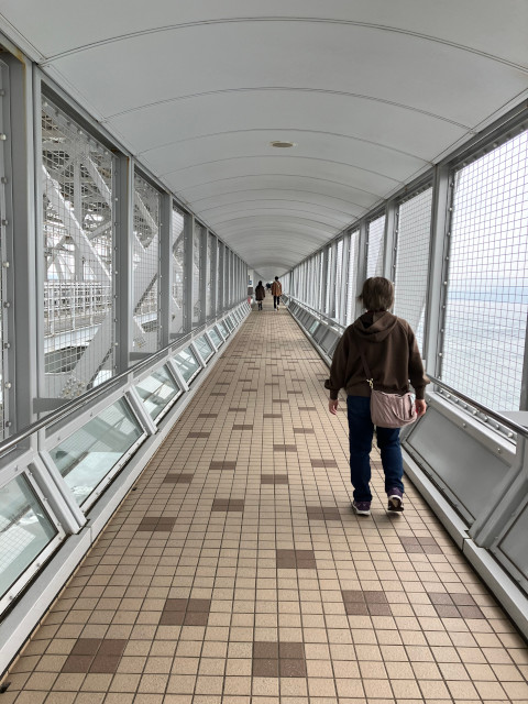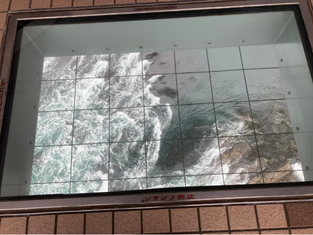 渦上45m!橋の中の海上遊歩道で世界三大潮流の一つに数えられる、鳴門の渦潮。日本が世界に誇る自然現象を、海上45mから見下ろすことができる施設が「徳島県立 渦の道」。遊歩道の壁面はほとんど金網、海風を受けて遊歩道を進むことしばらく、海を真上から見下ろせる足元が、ガラス床の上を歩き、鳴門の渦潮を覗き見る。しばし、大きな渦や渦潮観光船を覗き見る。お土産屋さんも兼ねた飲食店で、鯛めしとお味噌汁のランチセットを頂き、わかめをお土産に買いました。
