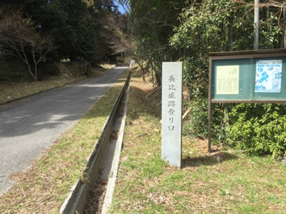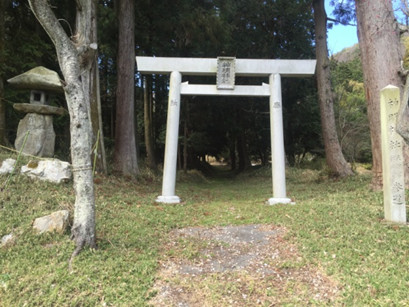 「長比城跡登り口」石碑の通りの反対側にある神明神社の石鳥居