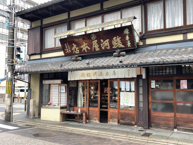 油懸地蔵尊先の交差点の角には、駿河屋本店という羊羹屋あり