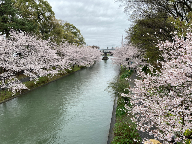 13:55 肥後橋を渡り左折し川沿いを進むと