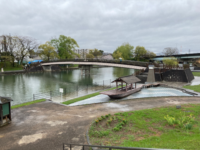 13:50 肥後橋とその下を流れる濠川(ほりかわ)
