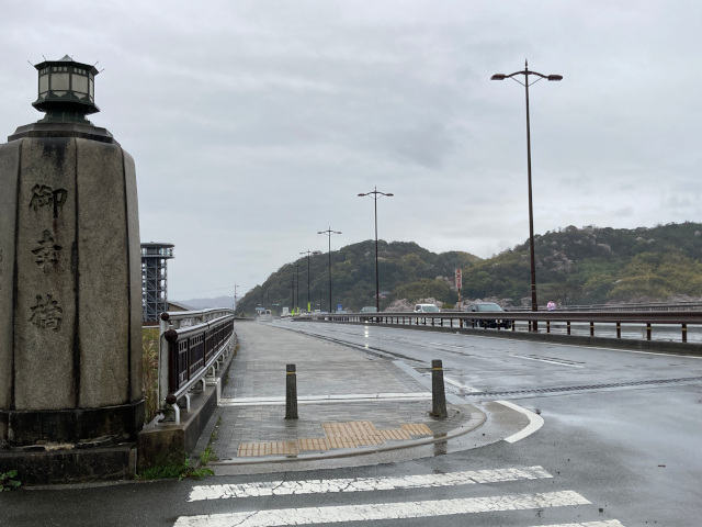 16:44 石清水八幡宮の鳥居 時刻が遅いので鳥居前で一礼しただけ 日を改めて詣でることにした 今日は髭茶屋追分をスターしてから終日 雨の中を歩き詰めだったので、当初予定 した樟葉までは残念ながら至らなかった