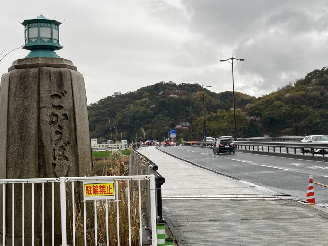 16:20 淀川御幸橋北詰 前方の左の山の上に石清水八幡宮が鎮座