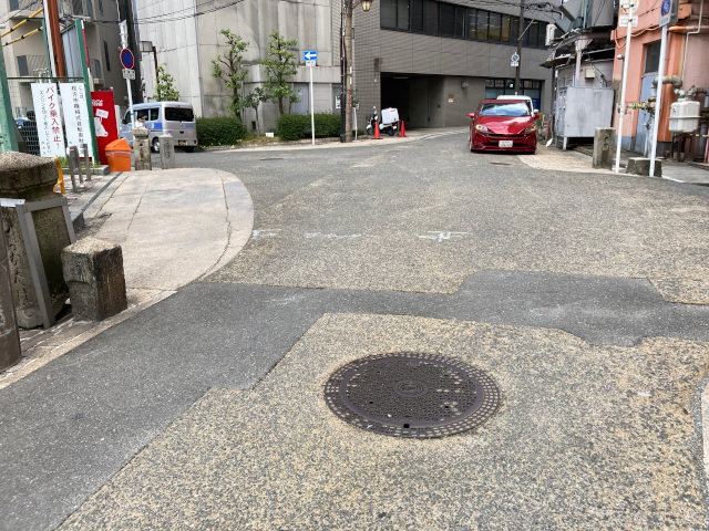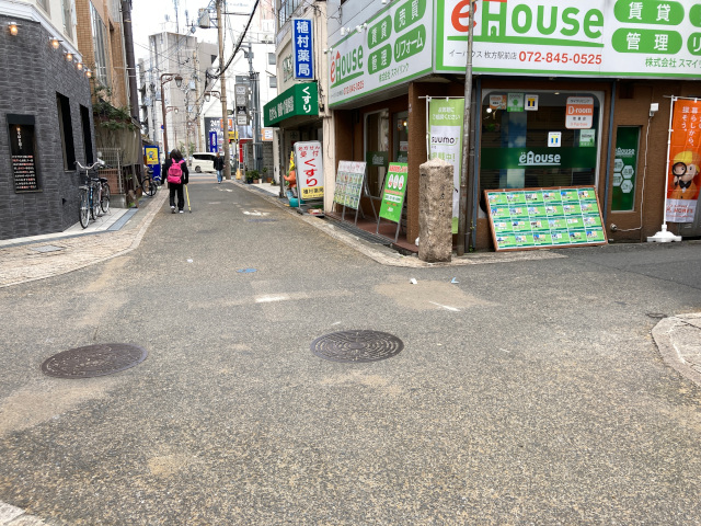 街道を前方建物の方から左カーブで来た所に枚方橋があった