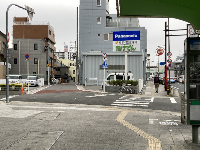 16:57 関目5丁目交差点付近は旧道のつながりが 分かりにくい 関目5交差点で京阪本通りを渡り左折、 次の関目5南交差点手前を右折、 ビッグボーイの脇を通って進む
