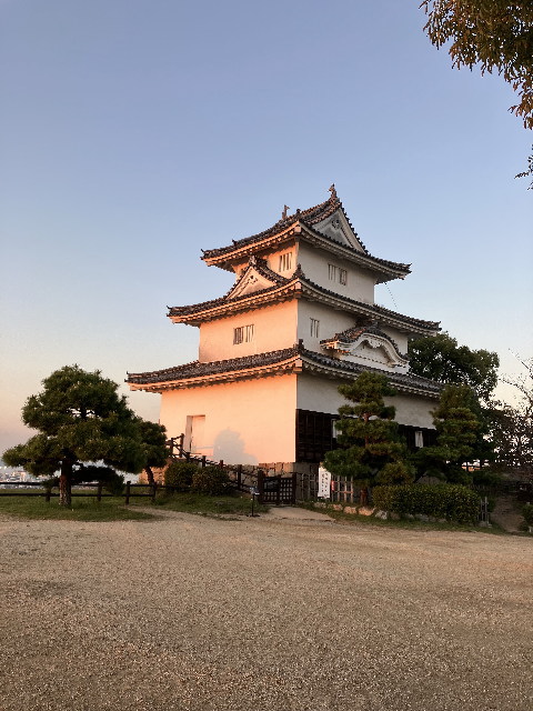 夕日に染まった丸亀城