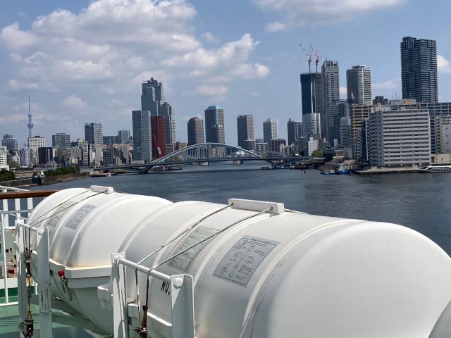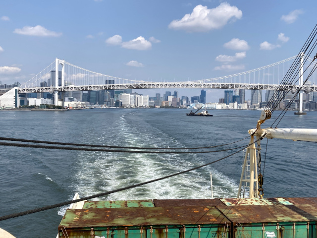 1日目【2025年(令和7年)4月7日】 おがさわら丸に乗船・竹芝桟橋から出港・レインボーブリッジをくぐり、伊豆諸島の東側を航行、一路父島へ