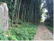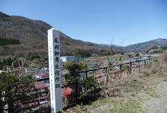 三五沢の先、左手草原の中に一里塚碑が見えます