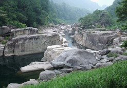木曽川の谷に、道路と鉄道がへばりついて延びています