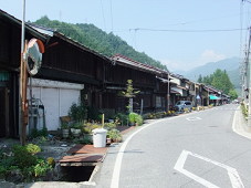 上の段坂の先にある昭和の大火を免れた福島宿の街並み
