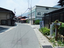 湯屋前にある水舟の辺りから松代屋のある方向を見ています